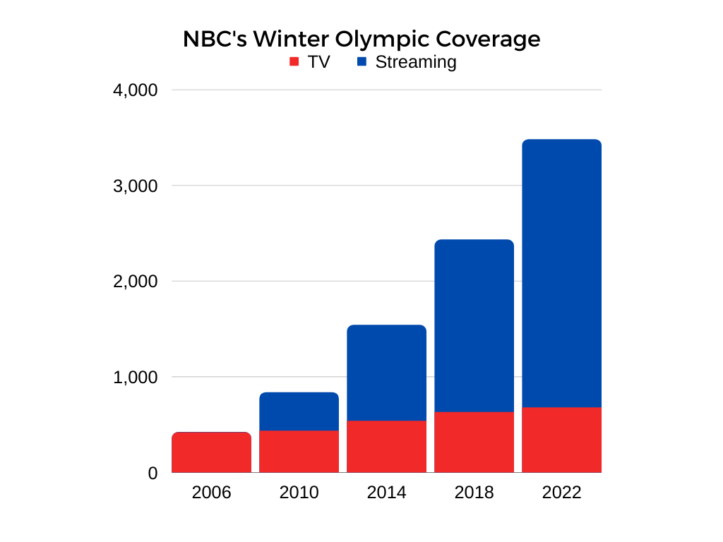 So if youâre up early turn on NBC now, or the re-airing in prime time tonight, or stream anytime on Peacock. Television coverage of the Olympics has exploded in recent years, and as a big fan of both TV and the Olympics, I am here for it.1